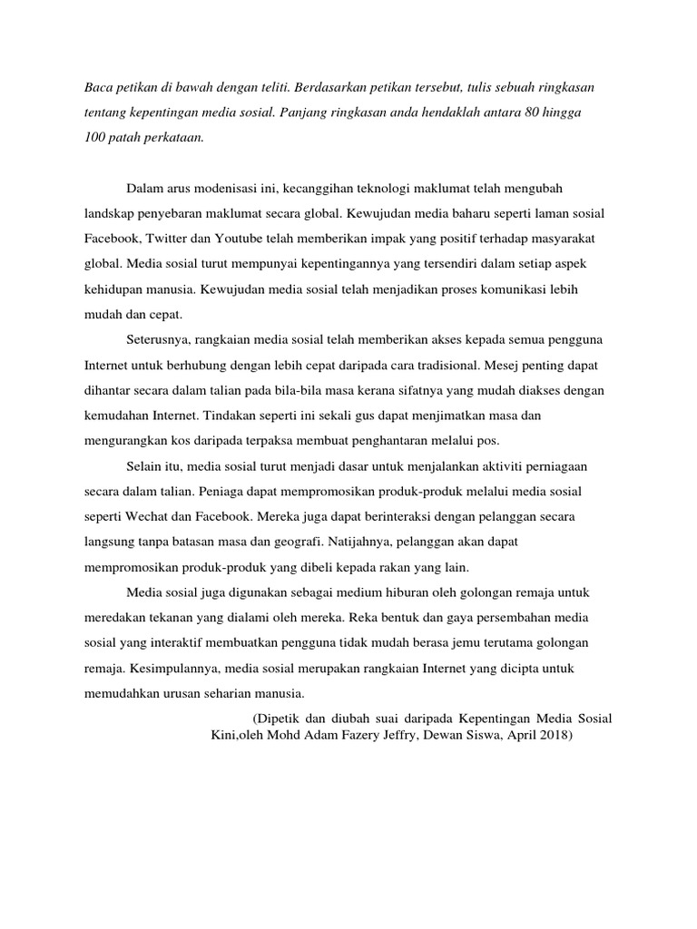 Karangan Spm Media Sosial Otosection